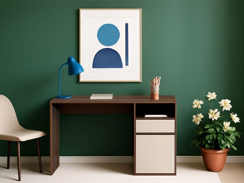 Tačan naziv dezena je: korpus iverica castello dark, front iverica kašmir. Radni sto SEA 120 je praktično, moderno i elegantno rešenje za opremanje radne sobe. Pored standardne radne površine poseduje i otvorenu policu, fioku i zatvoreni pregradni deo tako da je i veoma praktičan za odlaganje  važnih predmeta koji su nam uvek potrebni pri ruci u radnom prostoru.