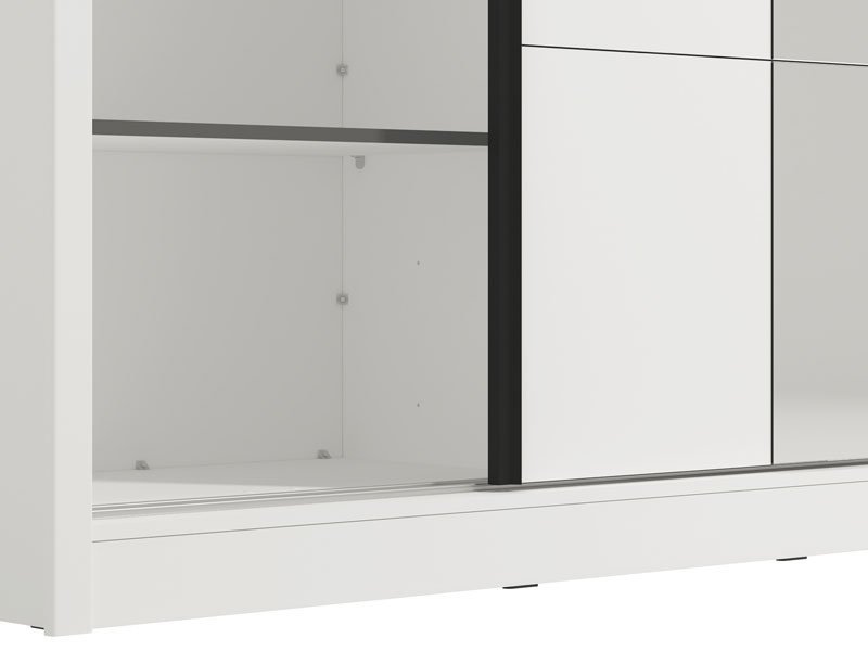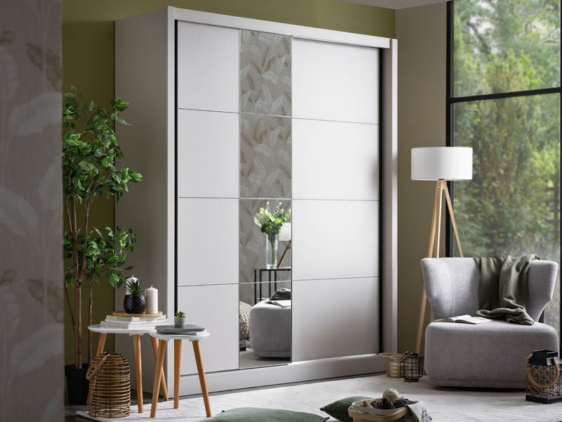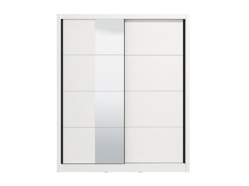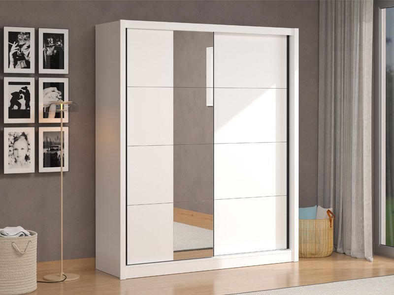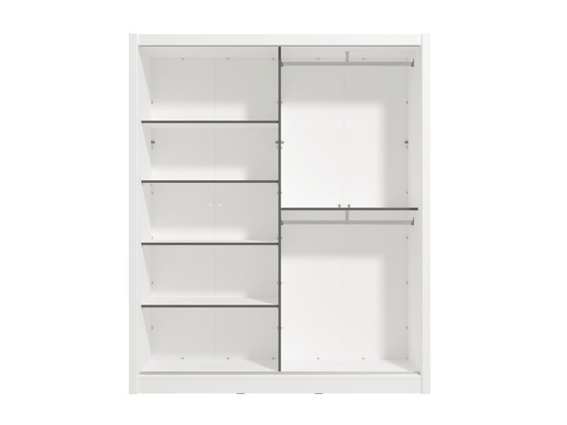 Model garderobera ALBI 180 OG sa kliznim vratima, u opak belom dekoru i segmentom sa ogledalom na levom frontu, doprinosi enterijerskoj funkcionalnosti, estetici i maksimalnoj iskorišćenosti prostora. Upotrebni prostor ovog modela čine police u levom i garderobne šipke u desnom delu.