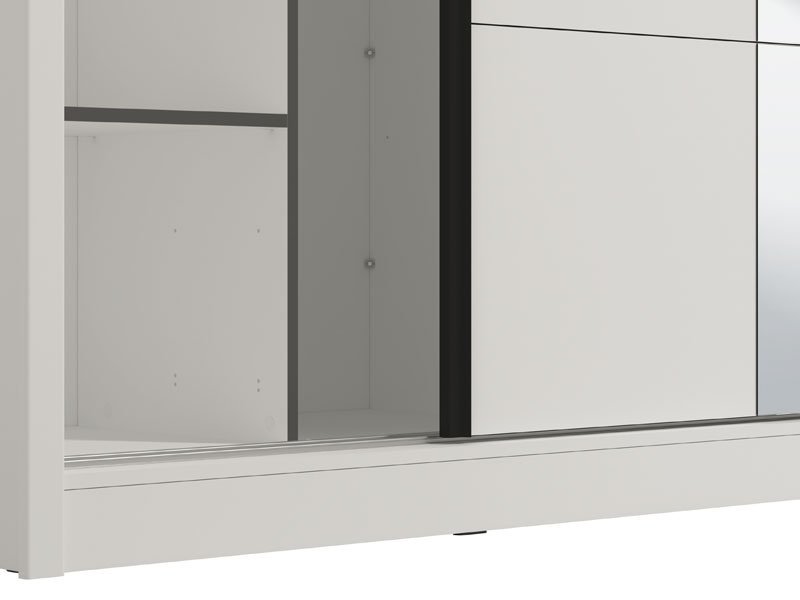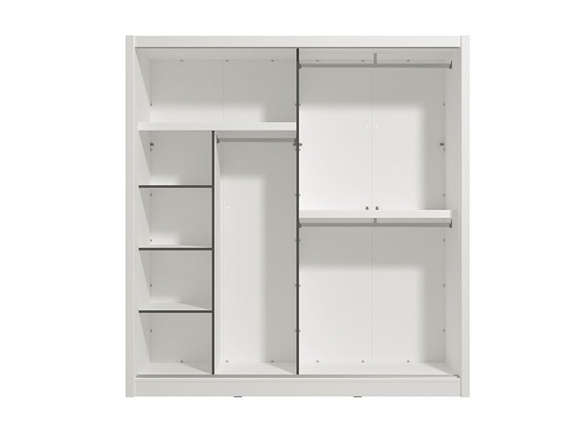 Model garderobera ALBI 205 OG sa kliznim vratima, u opak belom dekoru i segmentom sa ogledalom na levom frontu, doprinosi enterijerskoj funkcionalnosti, estetici i maksimalnoj iskorišćenosti prostora. Upotrebni prostor ovog modela čine police u levom delu i garderobne šipke u desnom delu. Poseduje mogućnost dodavanja seta od dve funkcionalne fioke. *Napomena: Cena je bez dodatne opreme. Preporučujemo Set fioka 2F (FUP)