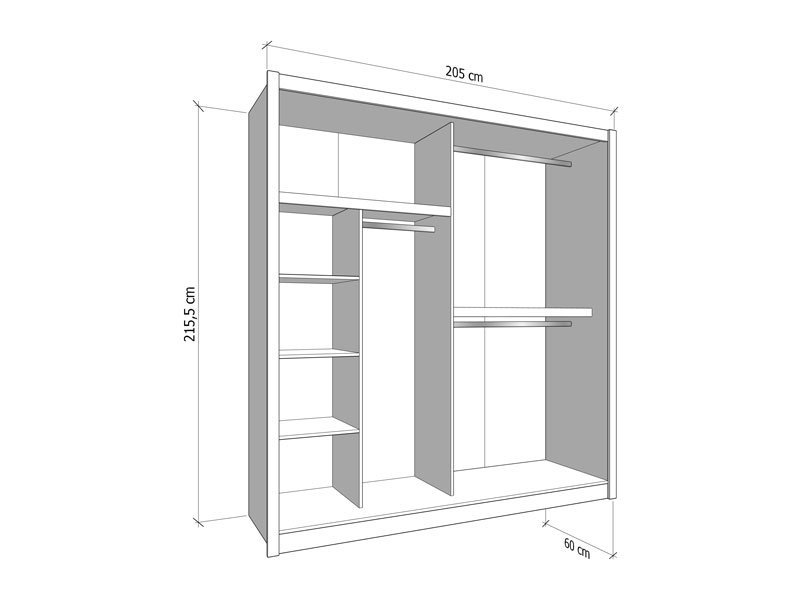 Dimenzije: Širina 205,0 cm x Dubina 60,0 cm x Visina 215,5 cm