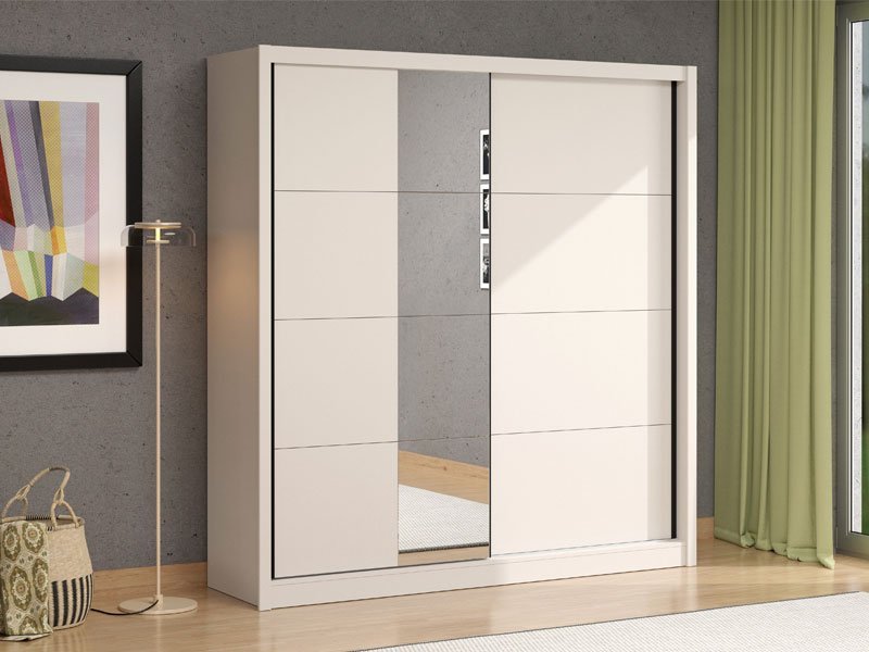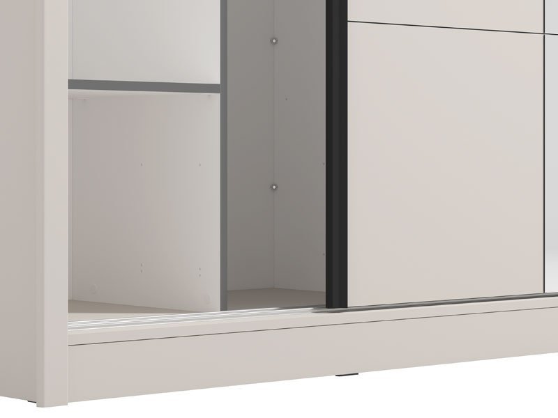Model garderobera ALBI 205 OG  sa kliznim vratima, u kašmir dekoru  i segmentom sa ogledalom na levom frontu, doprinosi enterijerskoj funkcionalnosti, estetici i maksimalnoj iskorišćenosti prostora. Upotrebni prostor ovog modela čine police u levom delu i  garderobne šipke u desnom delu. Poseduje mogućnost dodavanja seta od dve funkcionalne fioke. *Napomena: Cena je bez dodatne opreme. Preporučujemo Set fioka 2F (FUP)