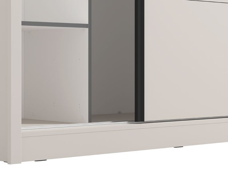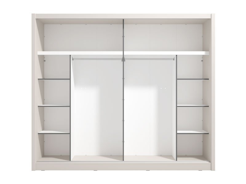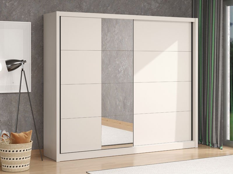 Model garderobera ALBI 245 OG sa kliznim vratima, u kašmir dekoru i segmentom sa ogledalom na levom frontu, obećava enterijersku praktičnost i maksimalnu iskorišćenost prostora. Upotrebni prostor ovog modela čine police u levom i desnom delu, kao i garderobna šipke u središnjem delu. *Napomena: Cena je bez dodatne opreme. Preporučujemo Set fioka 2F (FUP)