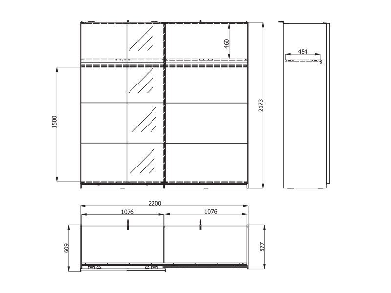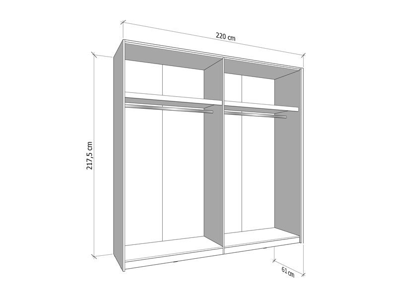 Dimenzije: Širina 220,0 cm x Dubina 61,0 cm x Visina 217,5 cm