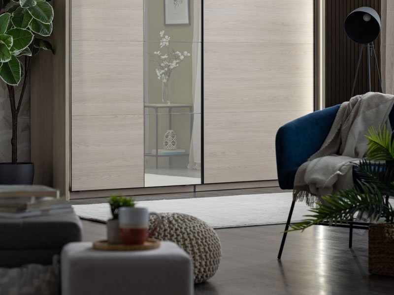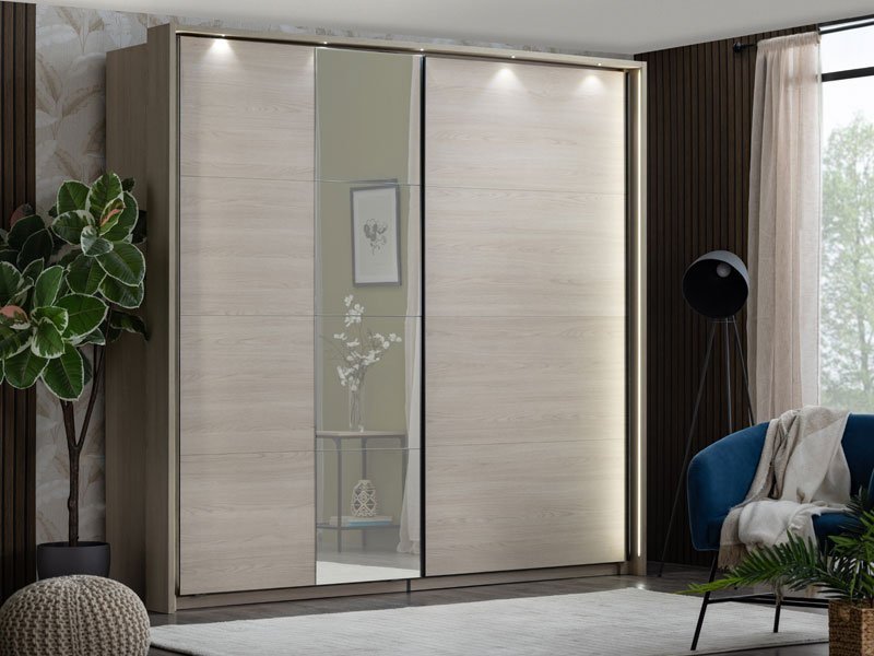 Model garderobera ARBELA 220 OG h217 sa kliznim vratima, u dekoru svetlog lučkog hrasta i segmentom sa ogledalom na levom frontu, doprinosi enterijerskoj funkcionalnosti, estetici i maksimalnoj iskorišćenosti prostora. Poseduje mogućnost dodavanja polica odgovarajućih za ovaj model garderobera, vertikala ili drugih nadogradnji za unapređenje funkcionalnosti. Takođe, ovaj model garderobera poseduje mogućnost ugradnje usporivača za klizna vrata, rama koji doprinosi vizuelno masivnijem izgledu, kao i mogućnost implementiranja dodatne rasvete. Deo je istoimenog sistema elemenata za opremanje spavaće sobe ARBELA, kao idealnog izbora za savremeno dizajniran enterijer. *Napomena: Cena je bez dodatne opreme. Preporučujemo Set LED rasvete Rb 5k, Set LED rasvete Rb UL, Usporivač UT, Set polica Pg3 – w220, Funkcionalna polica FUP 220 h217, Set fioka 2F (FUP), Ram Fj za garderober 220 h217