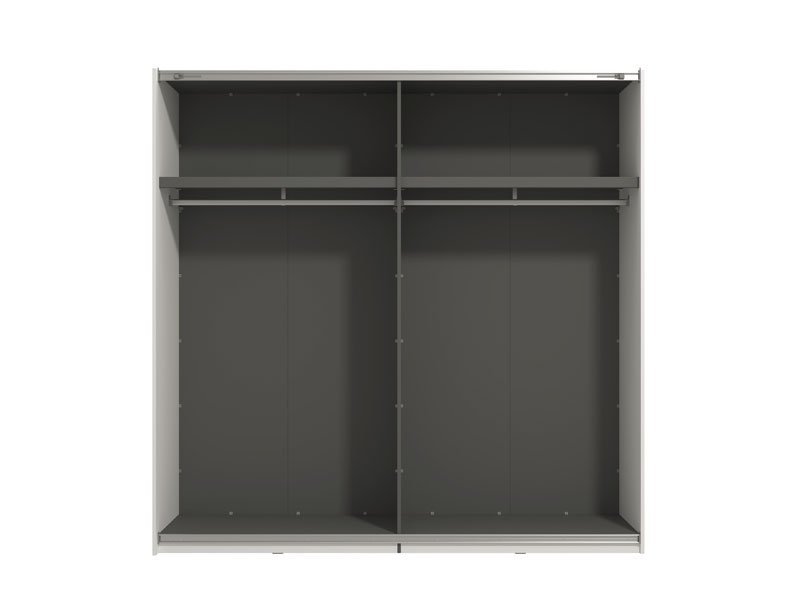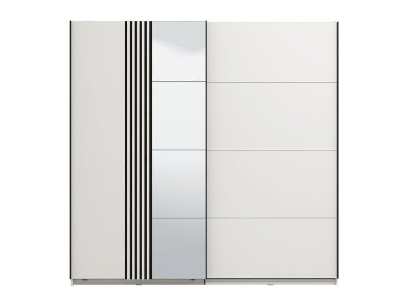 Garderober ASCALON 220 OG h217 u kombinaciji opak belog dekora, crnog dekora i bele mat folije, moderno je dizajniran i autentičan komad nameštaja koji će doprineti kako estetici, tako i funkcionalnosti ambijenta spavaće sobe. Segment sa ogledalom na levom frontu, doprinosi enterijerskoj praktičnosti i maksimalnoj iskorišćenosti prostora. Upotrebni prostor ovog modela čine garderobne šipke. Poseduje mogućnost dodavanja polica, vertikala, fioka, usporivača za klizni mehanizam, rama za garderober koji doprinosi izgledu masivnosti, kao mogućnost dodavanja rasvete. Deo je istoimenog sistema elemenata za opremanje spavaće sobe ASCALON, moderne dizajnerske forme. *Napomena: Cena je bez dodatne opreme. Preporučujemo Set polica Pg3 – w220, Ram Fj za garderober 220 h217, Set fioka 2F (FUP), Set LED rasvete Rb 5k, Usporivač UT, Set LED rasvete Rb UL, Funkcionalna polica FUP 220 h217