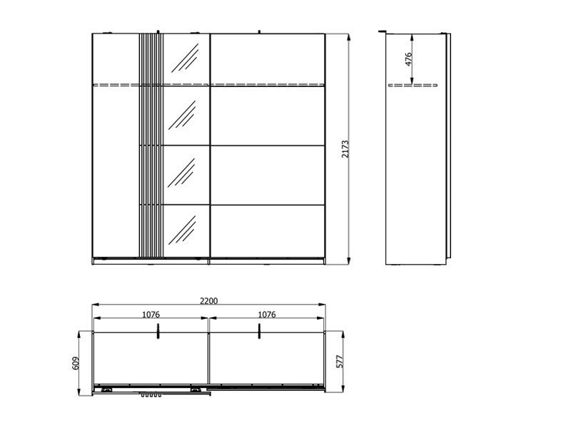 Dimenzije: Širina 220,0 cm x Dubina 61,0 cm x Visina 217,5 cm