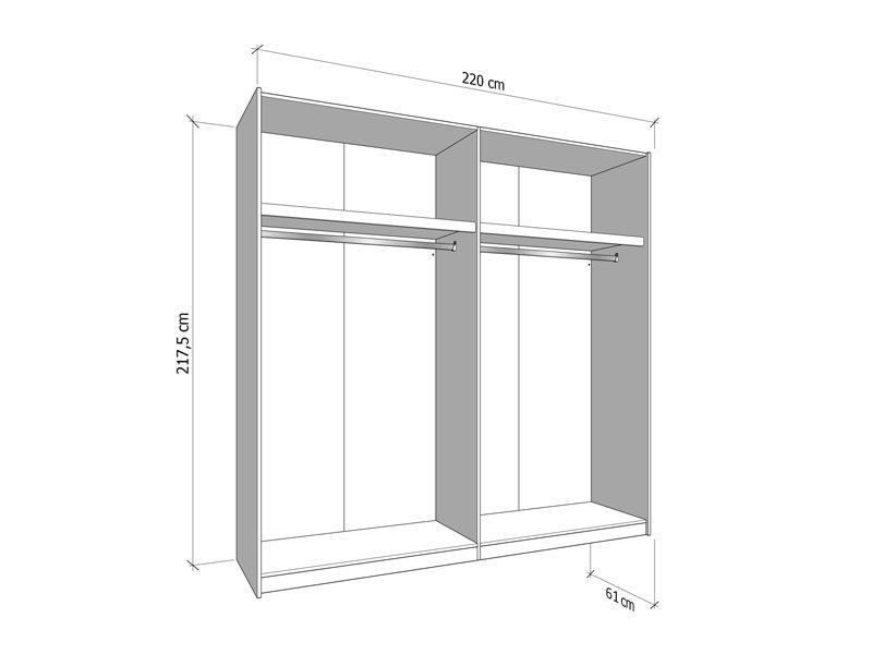 Dimenzije: Širina 220,0 cm x Dubina 61,0 cm x Visina 217,5 cm