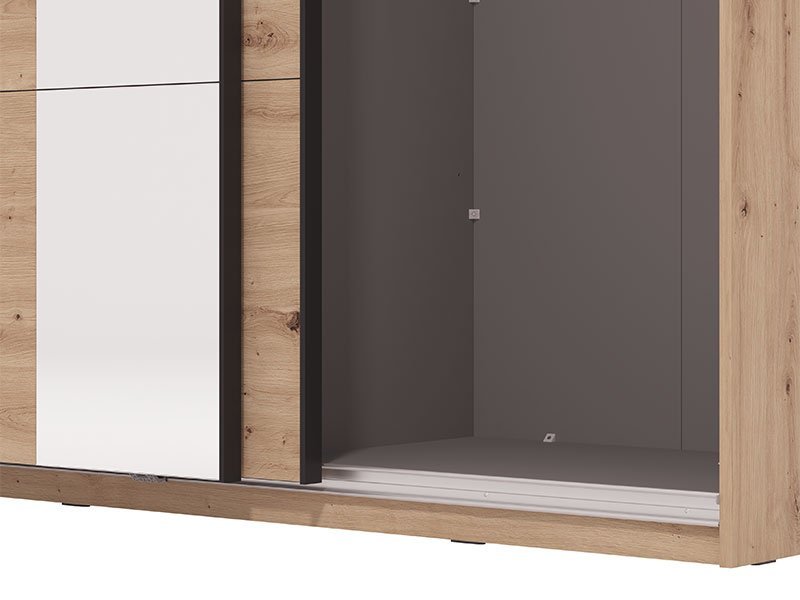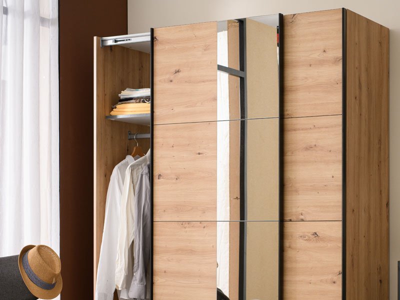 Model garderobera GARD 150  OH h217 u dekoru artisan hrasta, obećava enterijersku praktičnost i maksimalnu iskorišćenost prostora. Upotrebni prostor ovog modela čine garderobna šipke i praktične police u levom i desnom delu. Poseduje mogućnost dodavanja Set polica i ugradnje usporivača za klizna vrata. *Napomena: Cena je bez dodatne opreme. Preporučujemo Set polica Pg3 – w150 h217, Usporivač UT