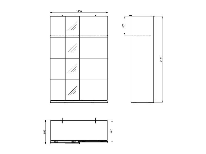 Dimenzije: Širina 145,5 cm x Dubina 61,0 cm x Visina 217,5 cm