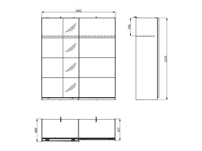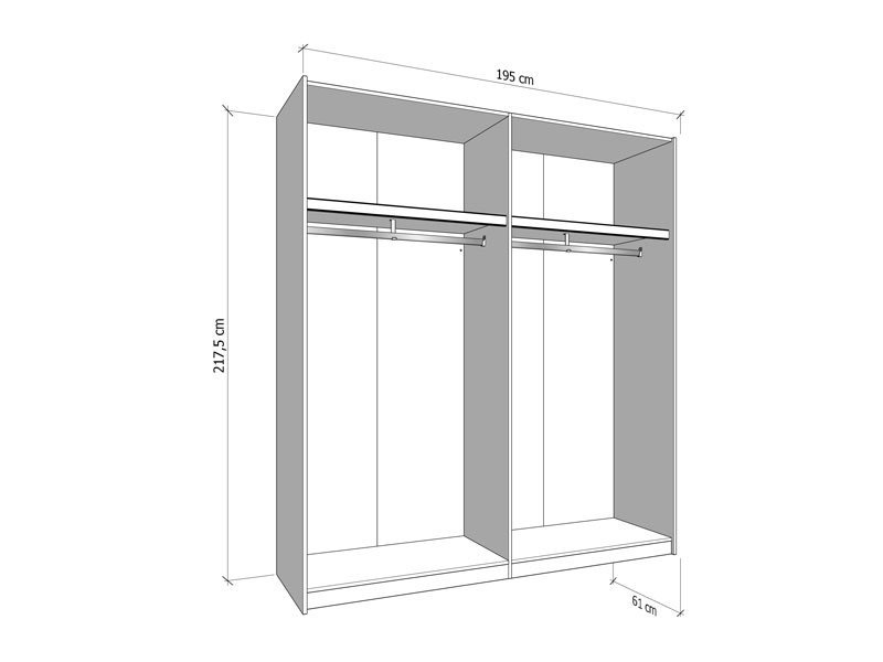 Dimenzije: Širina 195,0 cm x Dubina 61,0 cm x Visina 217,5 cm