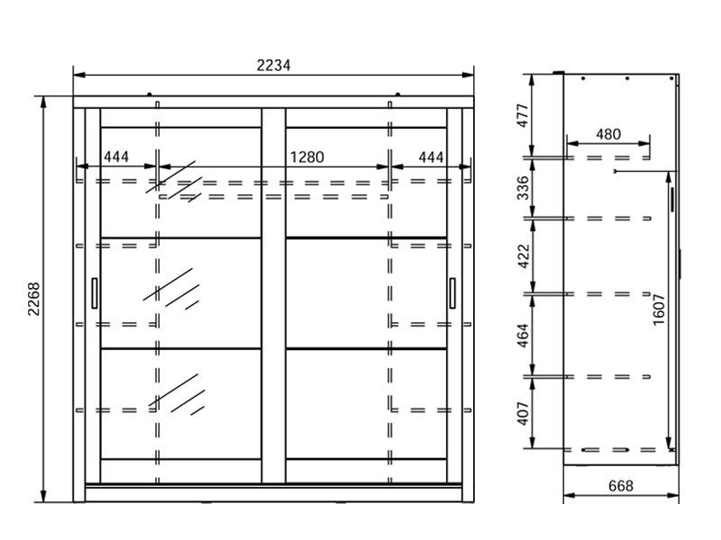 Dimenzije: Širina 223,5 cm x Dubina 67,0 cm x Visina 227,0 cm