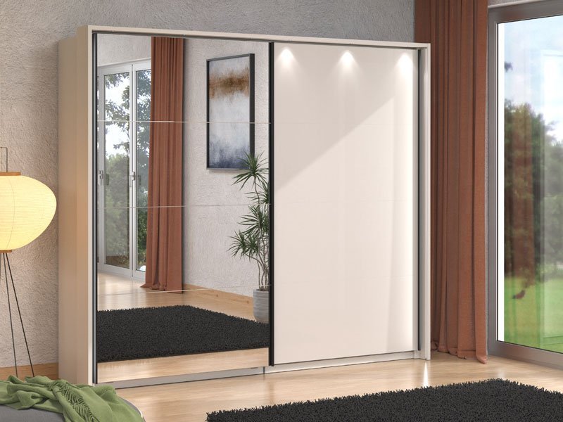 Garderober LUCCA 245 OG h217 u kombinaciji kašmir dekora i kašmir bojenog stakla, predstavlja atraktivno i funkcionalno dizajnersko rešenje za opremanje savremenog ambijenta spavaće sobe. Levi front garderobera prekriven je ogledalom, što doprinosi izraženoj estetici, eleganciji, ali i praktičnosti. Upotrebni prostor ovog modela čine garderobne šipke. Poseduje mogućnost dodavanja polica, vertikala, fioka, usporivača za klizni mehanizam, rama za garderober koji doprinosi izgledu masivnosti, kao mogućnost dodavanja rasvete. Deo je istoimenog sistema elemenata za opremanje spavaće sobe LUCCA, moderne dizajnerske forme. *Napomena: Cena je bez dodatne opreme. Preporučujemo Set LED rasvete Rb 6k, Set LED rasvete Rb UL, Usporivač UT, Set polica Pg3 – w245, Funkcionalna polica FUP 245 h217, Set fioka 2F (FUP), Ram Fj za garderober 245 h217