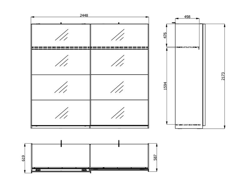 Dimenzije: Širina 245,0 cm x Dubina 62,0 cm x Visina 217,5 cm