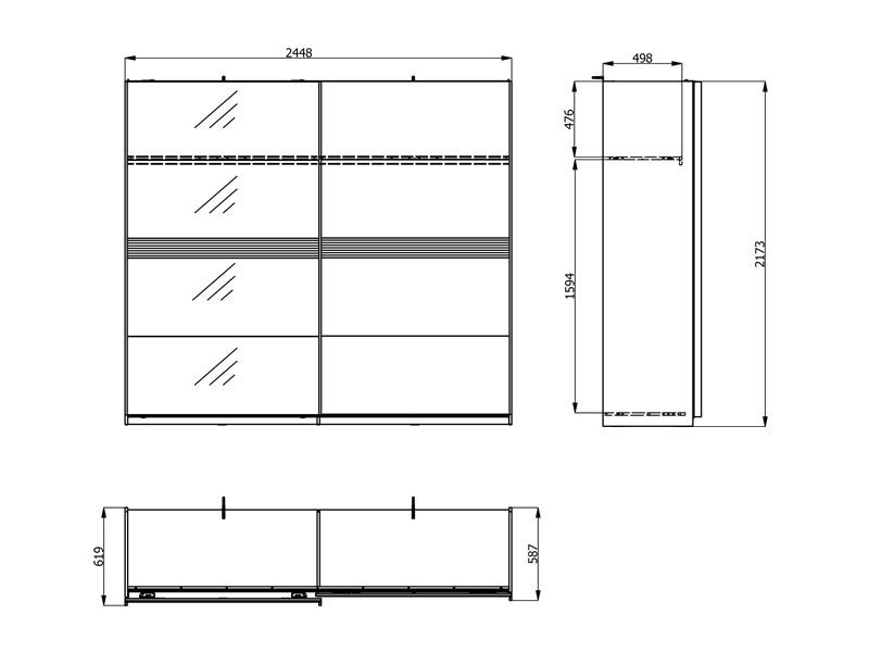 Dimenzije: Širina 245,0 cm x Dubina 62,0 cm x Visina 217,5 cm