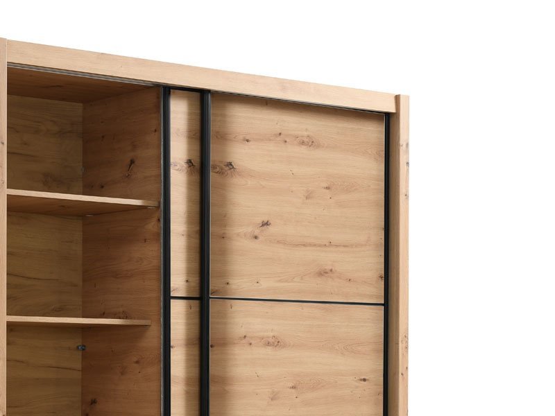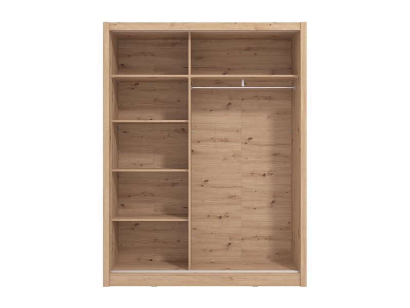 Garderober NAVARA 165 u dezenu artisan hrasta, je moderno dizajnirano i praktično rešenje za odlaganje. Unutrašnjost se sastoji od segmenta sa policama u levom delu i segmenta sa garderobnom šipkom u desnom delu. Poseban benefit ovog modela je klizni mehanizam koji doprinosi ekonomičnoj organizaciji raspoloživog prostora.Deo je linije NAVARA garderobera, tako da je stilski uklopiv i sa ostalim modelima.