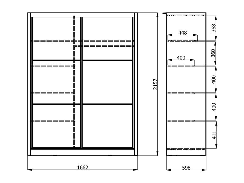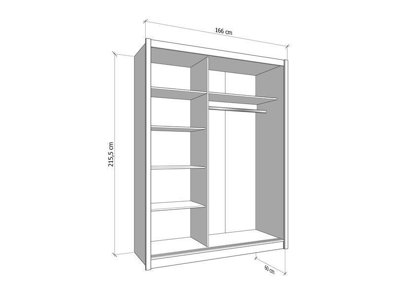 Dimenzije: Širina 166,0 cm x Dubina 60,0 cm x Visina 215,5 cm