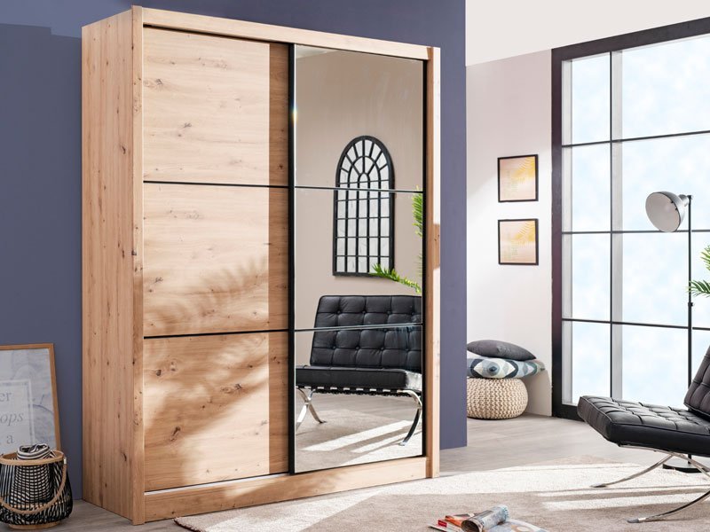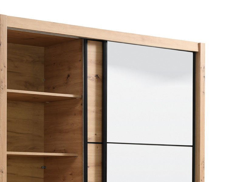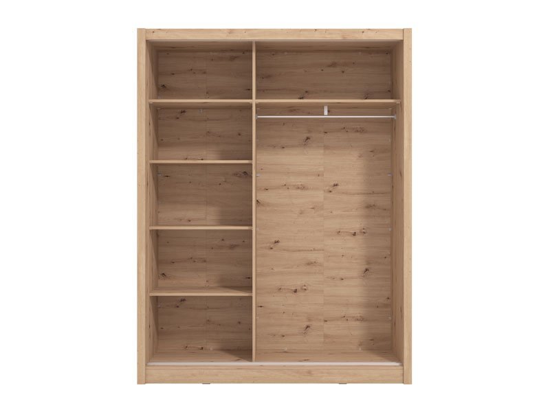 Garderober NAVARA 165 u dezenu artisan hrasta, je moderno dizajnirano i praktično rešenje za odlaganje. Unutrašnjost se sastoji od segmenta sa policama u levom delu i segmenta sa garderobnom šipkom u desnom delu. Poseban benefit ovog modela je klizni mehanizam koji doprinosi ekonomičnoj organizaciji raspoloživog prostora, kao i ogledalo na desnom kliznom elementu. Deo je linije NAVARA garderobera, tako da je stilski uklopiv i sa ostalim modelima.