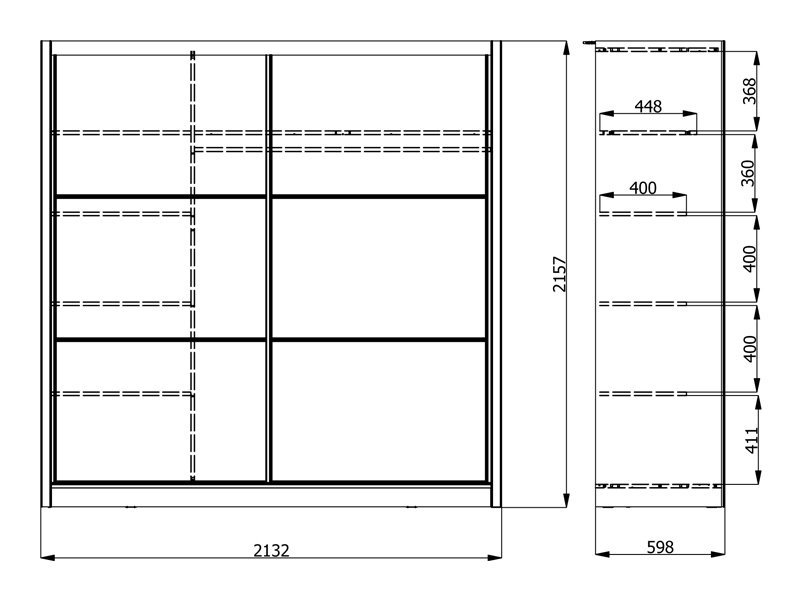 Dimenzije: Širina 213,0 cm x Dubina 60,0 cm x Visina 215,5 cm