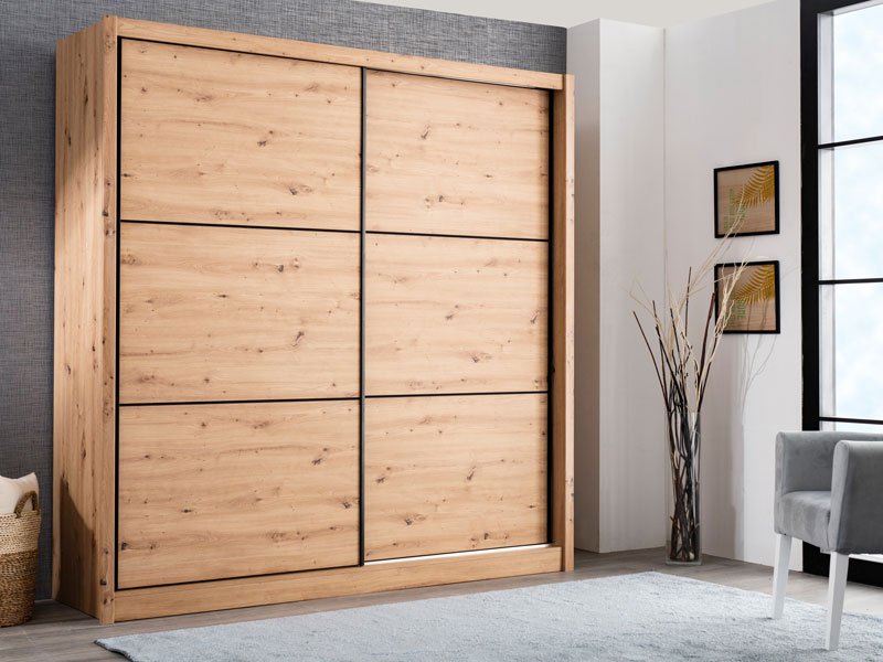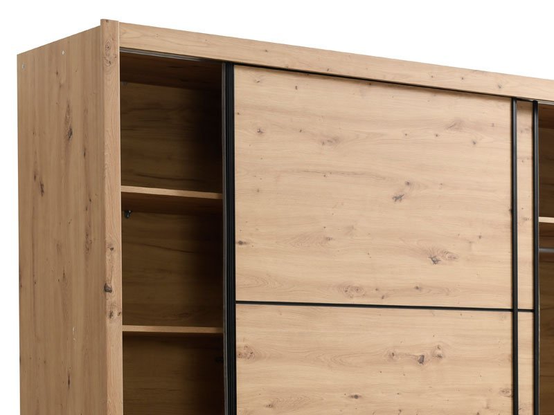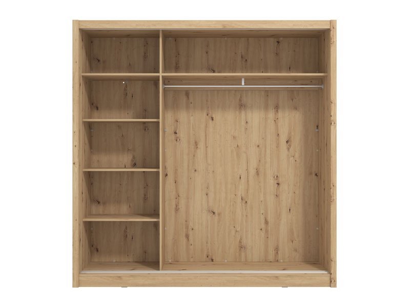 Garderober NAVARA 215 u dezenu artisan hrasta je moderno dizajnirano i praktično rešenje za odlaganje. Unutrašnjost se sastoji od segmenta sa policama u levom delu i prostranog segmenta sa garderobnom šipkom u središnjem i desnom delu. Poseban benefit ovog modela je klizni mehanizam koji doprinosi ekonomičnoj organizaciji raspoloživog prostora. Deo je linije NAVARA garderobera, tako da je stilski uklopiv i sa ostalim modelima.