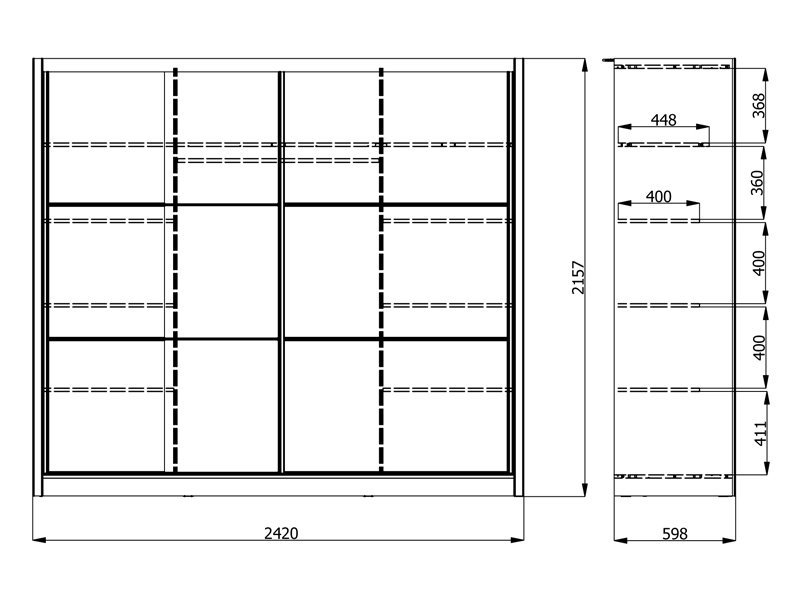 Dimenzije: Širina 242,0 cm x Dubina 60,0 cm x Visina 215,5 cm