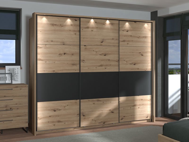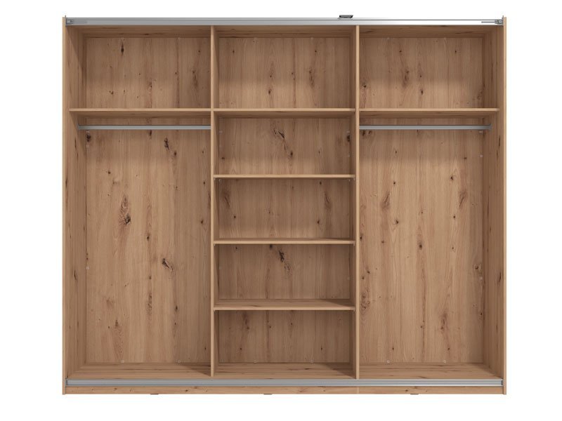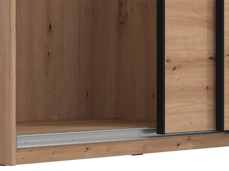 Model kliznog dvokrilnog garderobera SARDINIA 270, u kombinaciji dekora artisan hrasta i crnog dekora, spoj je topline naturalnog i rustičnog sa karakteristikama industrijskog stila u dizajnu enterijera. Upotrebni prostor ovog modela čine police u središnjem delu i dve garderobne šipke u levom i desnom delu. Pripada istoimenoj kolekciji SARDINIA, sa čijim elementima zaokružuje čitavu enterijersku celinu kada je u pitanju opremanje spavaće sobe. Postoji mogućnost ugradnje usporivača kliznog mehanizma, kao i dodatne LED rasvete. *Napomena: Cena je bez dodatne opreme. Preporučujemo Ram Fh za garderober 270, Usporivač UT, Set LED rasvete Rb UL, Set LED rasvete Rb 6k