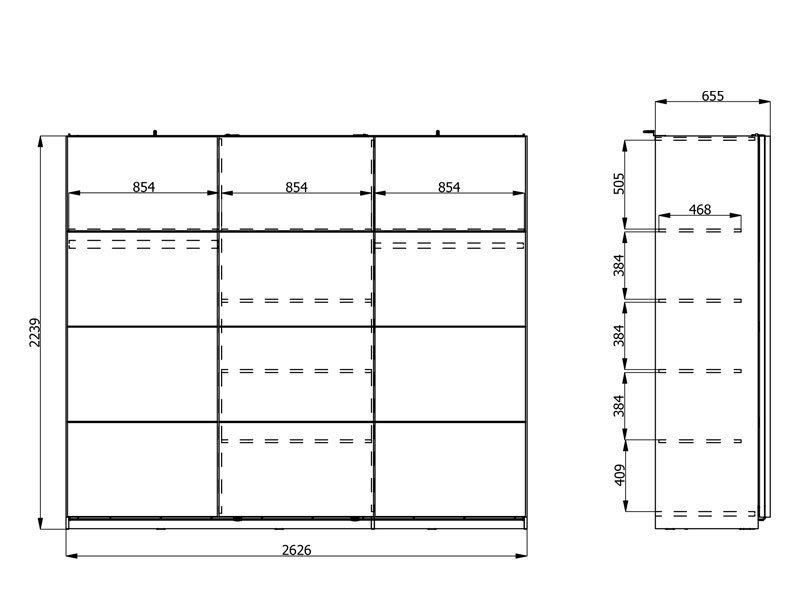 Dimenzije: Širina 262,5 cm x Dubina 65,5 cm x Visina 224,0 cm