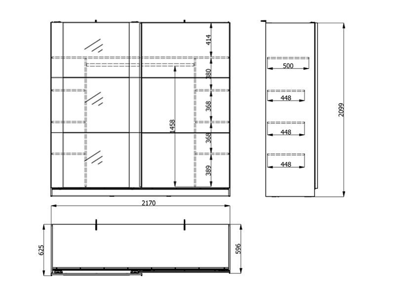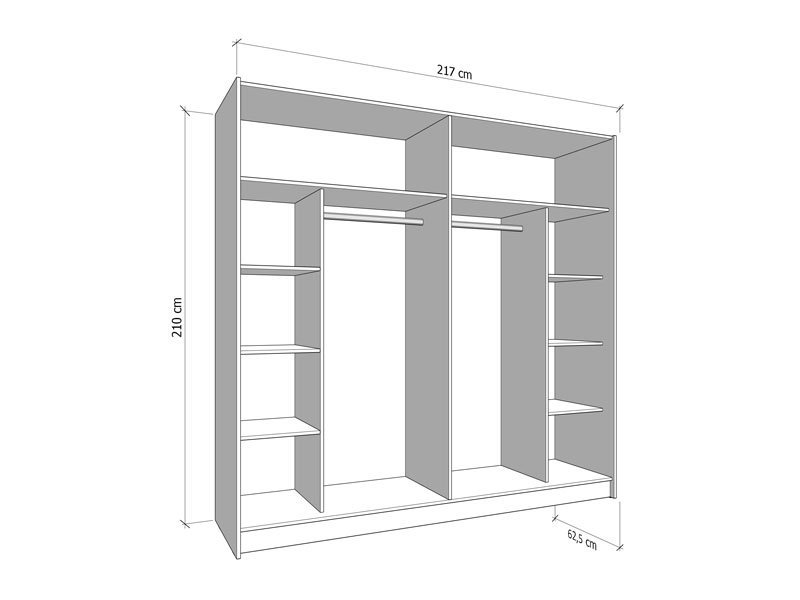 Dimenzije: Širina 217,0 cm x Dubina 62,5 cm x Visina 210,0 cm