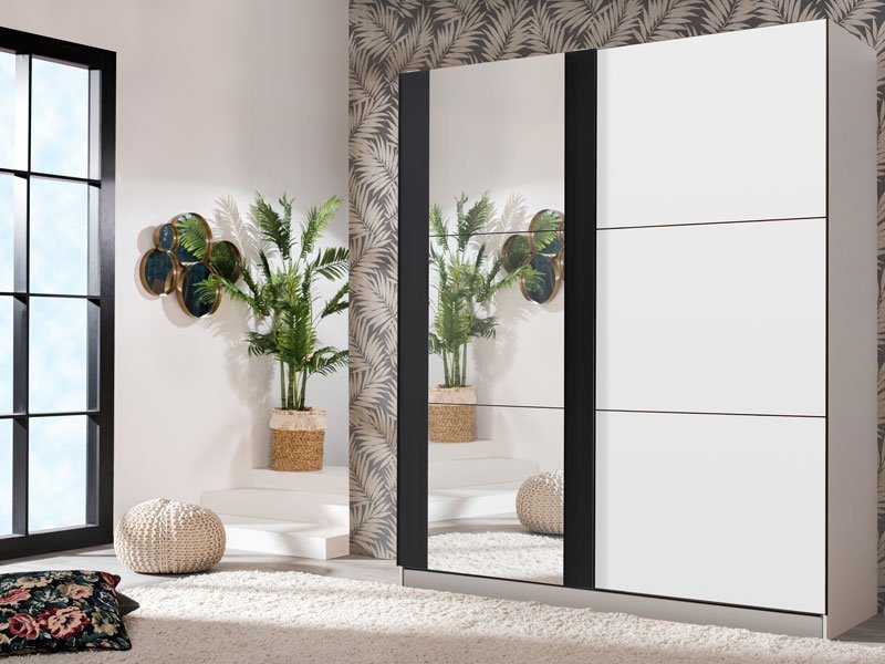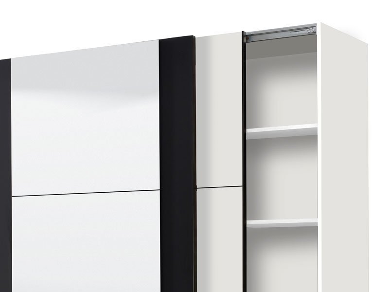 Garderober SICILIA 220 OG u kombinaciji dekora opak bele i crne, predstavlja model garderobera savremenog dizajna i velike praktične upotrebne vrednosti. Unutrašnjost se sastoji od segmenta sa policama u levom i desnom delu, kao i segmenta sa garderobnom šipkom u središnjem delu. Poseban benefit ovog modela je klizni mehanizam koji doprinosi ekonomičnoj organizaciji raspoloživog prostora, kao i ogledalo na levom kliznom elementu. Poseduje mogućnost ugradnje usporivača kod kliznog mehanizma koji dodatno doprinose sigurnosti i funkcionalnosti. *Napomena: Cena je bez dodatne opreme. Preporučujemo Usporivač UT, Ram Fh za garderober 220, Set LED rasvete Rb UL, Set LED rasvete Rb 5k