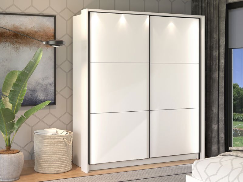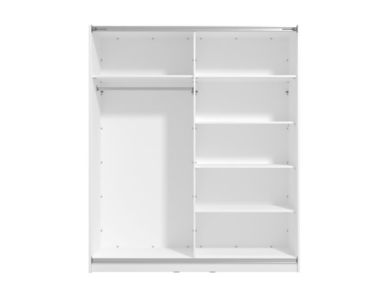 Garderober SIERRA 180 u opak belom dezenu, predstavlja model garderobera savremenog dizajna i velike praktične upotrebne vrednosti. Unutrašnjost se sastoji od segmenta sa policama u desnom delu, kao i segmenta sa garderobnom šipkom u levom delu. Poseban benefit ovog modela je klizni mehanizam koji doprinosi ekonomičnoj organizaciji raspoloživog prostora. Poseduje mogućnost ugradnje usporivača kod kliznog mehanizma koji dodatno doprinose sigurnosti i funkcionalnosti, kao i mogućnost dodavanja LED rasvete. *Napomena: Cena je bez dodatne opreme. Preporučujemo Set LED rasvete Rb 5k, Set LED rasvete Rb UL, Usporivač UT