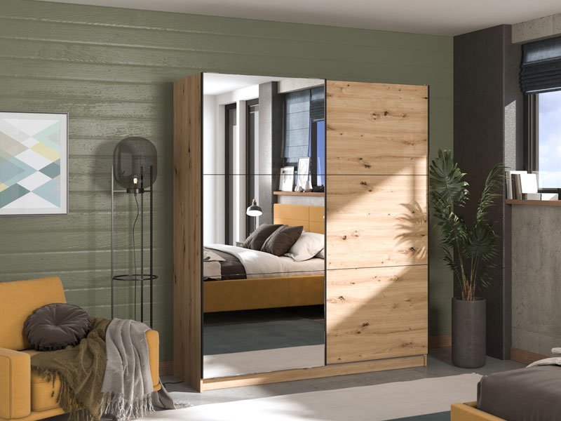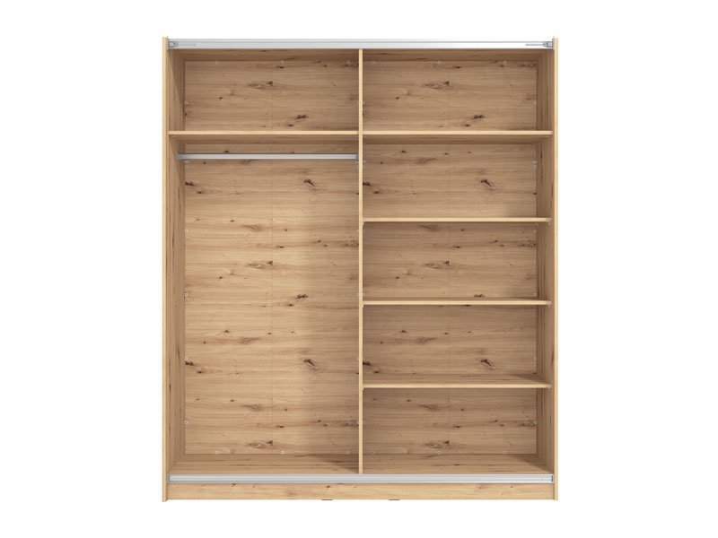 Garderober SIERRA 180 u dekoru artisan hrasta, predstavlja model garderobera savremenog dizajna i velike praktične upotrebne vrednosti. Unutrašnjost se sastoji od segmenta sa policama desnom delu, kao i segmenta sa garderobnom šipkom u levom delu. Poseban benefit ovog modela je klizni mehanizam koji doprinosi ekonomičnoj organizaciji raspoloživog prostora, kao i ogledalo na levom kliznom elementu. Poseduje mogućnost ugradnje usporivača kod kliznog mehanizma koji dodatno doprinose sigurnosti i funkcionalnosti, kao i mogućnost dodavanja LED rasvete. *Napomena: Cena je bez dodatne opreme. Preporučujemo Ram Fh za garderober 180, Set LED rasvete Rb 5k, Set LED rasvete Rb UL, Usporivač UT