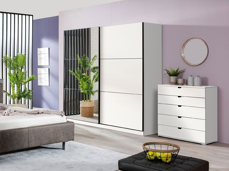 Garderober SIERRA 220 OG u opak belom dekoru predstavlja model garderobera savremenog dizajna i velike praktične upotrebne vrednosti. Unutrašnjost se sastoji od segmenta sa policama u levom i desnom delu, kao i segmenta sa garderobnom šipkom u središnjem delu. Poseban benefit ovog modela je klizni mehanizam koji doprinosi ekonomičnoj organizaciji raspoloživog prostora, kao i ogledalo na levom kliznom elementu. Poseduje mogućnost ugradnje usporivača kod kliznog mehanizma koji dodatno doprinose sigurnosti i funkcionalnosti. *Napomena: Cena je bez dodatne opreme. Preporučujemo Usporivač UT, Ram Fh za garderober 220, Set LED rasvete Rb 5k, Set LED rasvete Rb UL