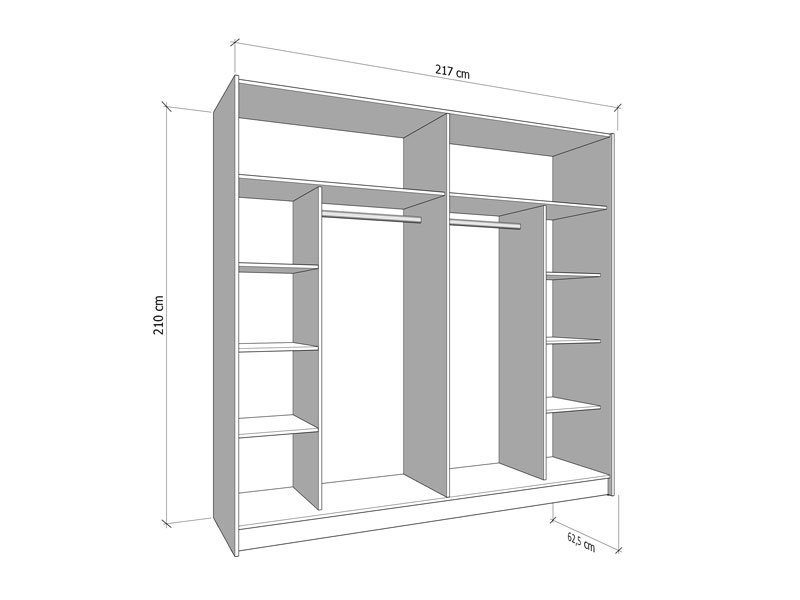Dimenzije: Širina 217,0 cm x Dubina 62,5 cm x Visina 210,0 cm