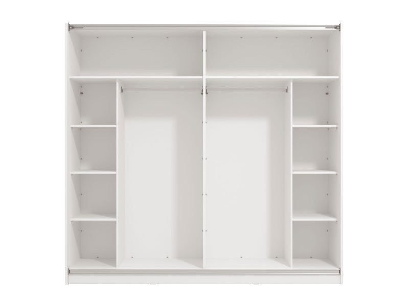 Garderober SIERRA 220 u opak belom dekoru, predstavlja model garderobera savremenog dizajna i velike praktične upotrebne vrednosti. Unutrašnjost se sastoji od segmenta sa policama u levom i desnom delu, kao i segmenta sa garderobnom šipkom u središnjem delu. Poseban benefit ovog modela je klizni mehanizam koji doprinosi ekonomičnoj organizaciji raspoloživog prostora. Poseduje mogućnost ugradnje usporivača kod kliznog mehanizma koji dodatno doprinose sigurnosti i funkcionalnosti. *Napomena: Cena je bez dodatne opreme. Preporučujemo Usporivač UT, Ram Fh za garderober 220, Set LED rasvete Rb 5k, Set LED rasvete Rb UL