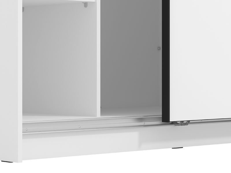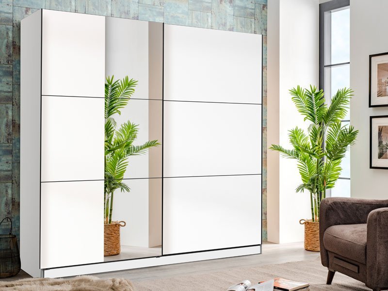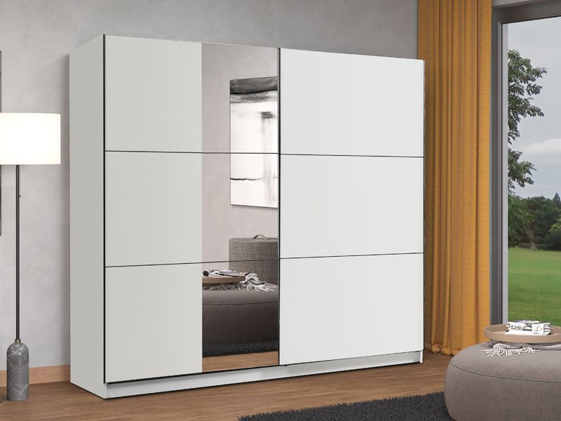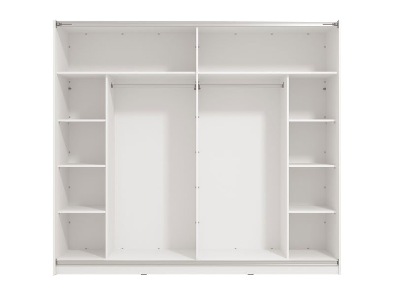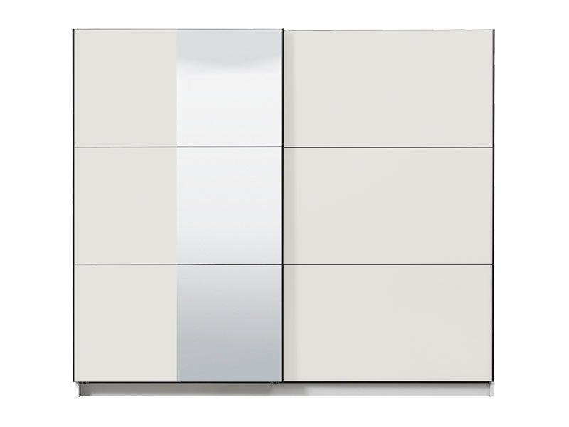 Garderober SIERRA 240 OG u opak belom dekoru predstavlja model garderobera savremenog dizajna i velike praktične upotrebne vrednosti. Unutrašnjost se sastoji od segmenta sa policama u levom i desnom delu, kao i segmenta sa garderobnom šipkom u središnjem delu. Poseban benefit ovog modela je klizni mehanizam koji doprinosi ekonomičnoj organizaciji raspoloživog prostora, kao i ogledalo na polovini levog kliznog elementa koje ima i funkcionalnu i estetsku vrednost. Poseduje mogućnost ugradnje usporivača kod kliznog mehanizma koji dodatno doprinose sigurnosti i funkcionalnosti.