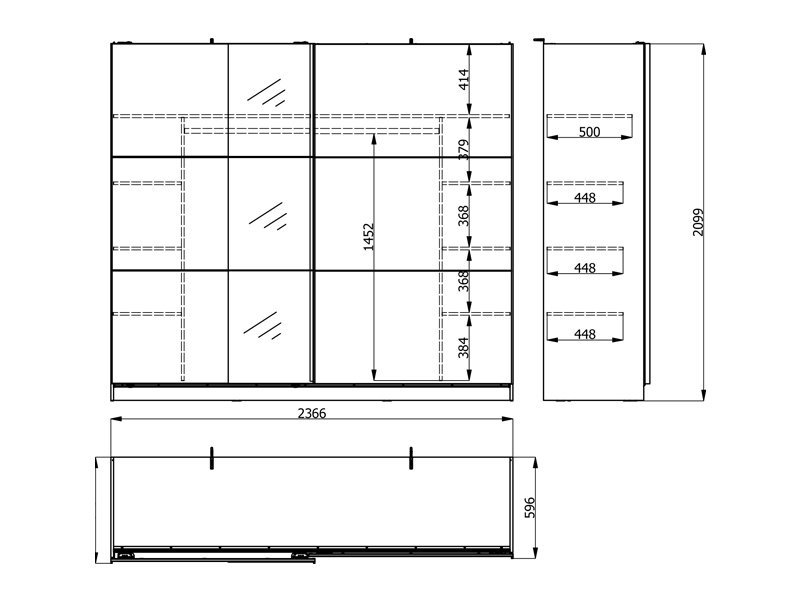 Dimenzije: Širina 236,5 cm x Dubina 62,5 cm x Visina 210,0 cm