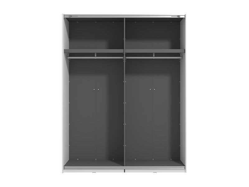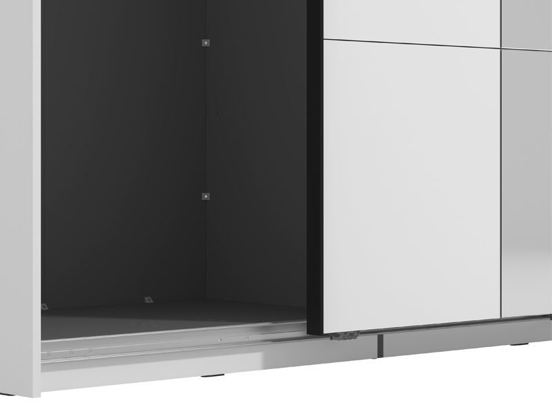 Garderober VEYMONT 150 OG h217 sa kliznim vratima, u opak belom dekoru i segmentom sa ogledalom na levom frontu, doprinosi enterijerskoj funkcionalnosti i estetici. Deo je kolekcije garderobera VEYMONT i predstavlja elegantno i veoma atraktivno dizajnersko rešenje, čija izražena estetika doprinosi celokupnom ambijentalnom utisku. Upotrebni prostor ovog modela čine garderobne šipke i po jedna praktična polica sa leve i desne strane. Poseduje mogućnost dodavanja seta polica odgovarajućih za ovaj model garderobera, kao  i mogućnost ugradnje usporivača za klizna vrata. *Napomena: Cena je bez dodatne opreme. Preporučujemo Usporivač UT, Set polica Pg3 – w150 h217