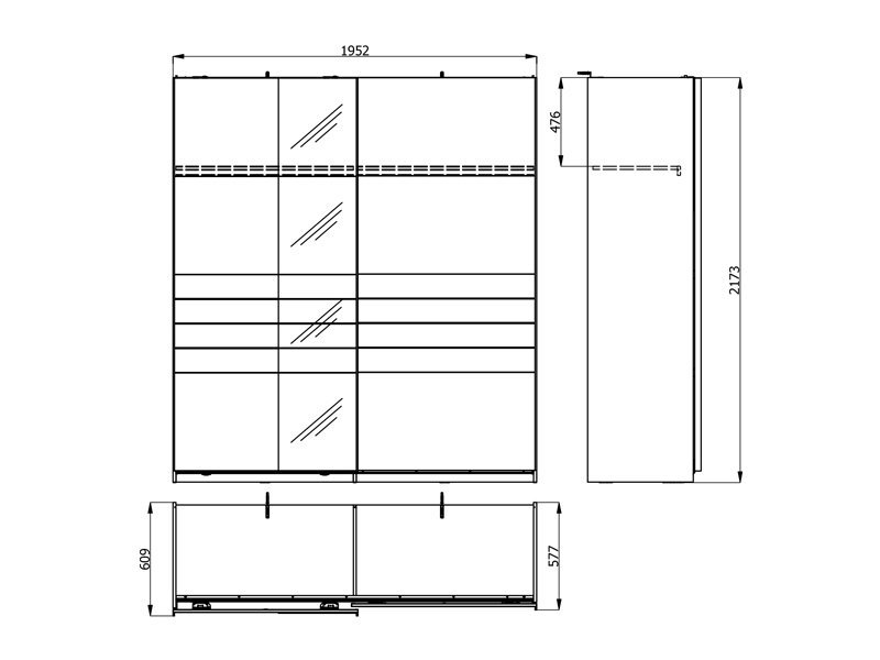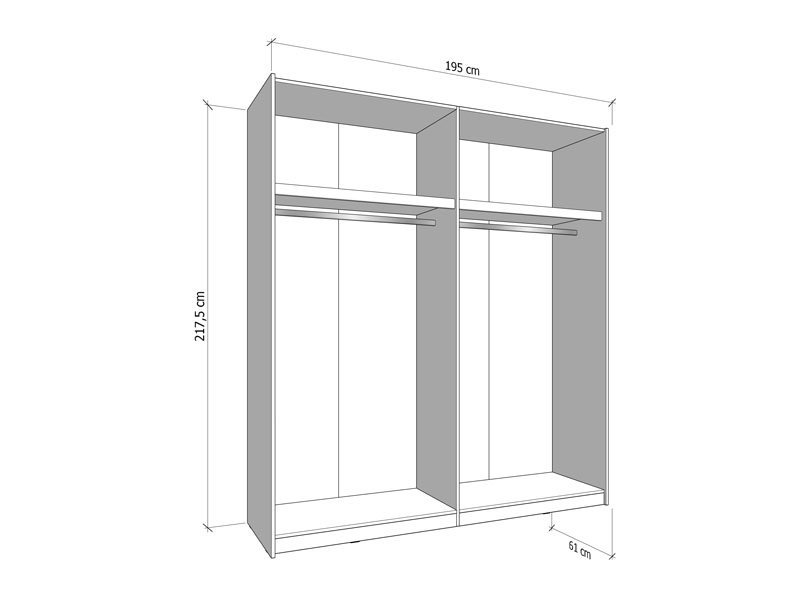 Dimenzije: Širina 195,0 cm x Dubina 61,0 cm x Visina 217,5 cm