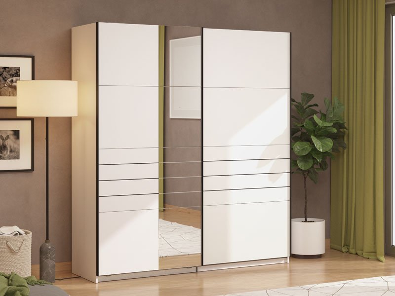 Garderober VEYMONT 200 OG h217 sa kliznim vratima, u opak belom dekoru i segmentom sa ogledalom na levom frontu, doprinosi enterijerskoj funkcionalnosti i estetici. Deo je kolekcije garderobera VEYMONT i predstavlja elegantno i veoma atraktivno dizajnersko rešenje, čija izražena estetika doprinosi celokupnom ambijentalnom utisku. Upotrebni prostor ovog modela čine garderobne šipke i po jedna praktična polica sa leve i desne strane. Poseduje mogućnost dodavanja seta polica odgovarajućih za ovaj model garderobera, kao  i mogućnost ugradnje usporivača za klizna vrata. *Napomena: Cena je bez dodatne opreme. Preporučujemo Set polica Pg3 – w200 h217, Usporivač UT