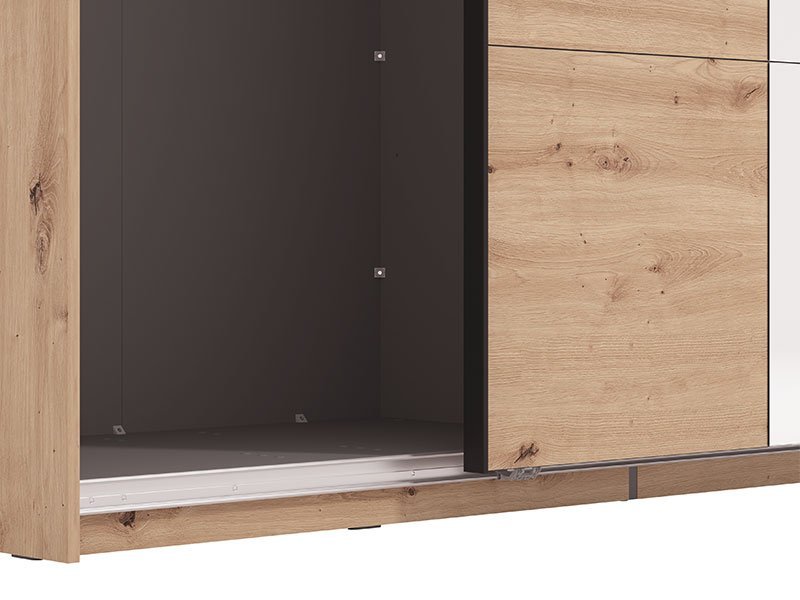 Garderober VEYMONT 200 OG h217 sa kliznim vratima, u dekoru artisan hrasta i segmentom sa ogledalom na levom frontu, doprinosi enterijerskoj funkcionalnosti i estetici. Deo je kolekcije garderobera VEYMONT i predstavlja elegantno i veoma atraktivno dizajnersko rešenje, čija izražena estetika doprinosi celokupnom ambijentalnom utisku. Upotrebni prostor ovog modela čine garderobne šipke i po jedna praktična polica sa leve i desne strane. Poseduje mogućnost dodavanja Seta polica odgovarajućih za ovaj model garderobera, kao i mogućnost ugradnje usporivača za klizna vrata. *Napomena: Cena je bez dodatne opreme. Preporučujemo Set polica Pg3 – w200 h217, Usporivač UT