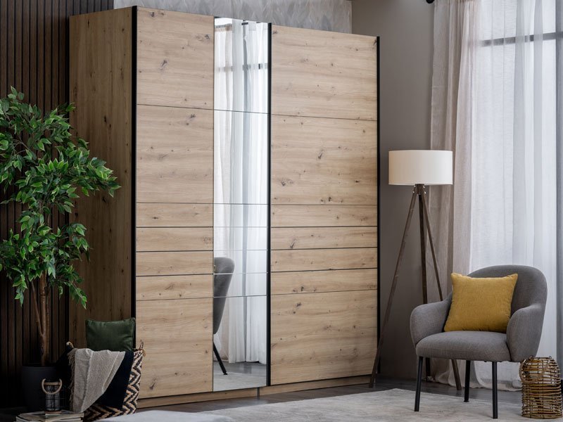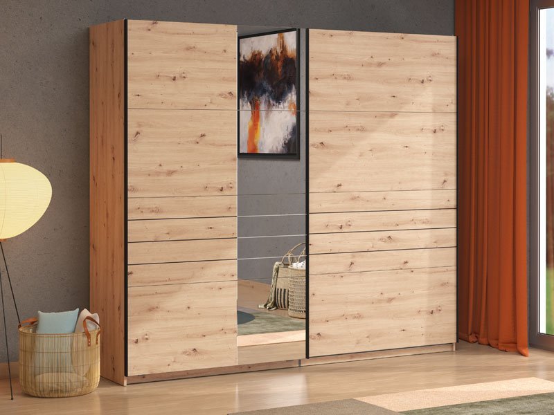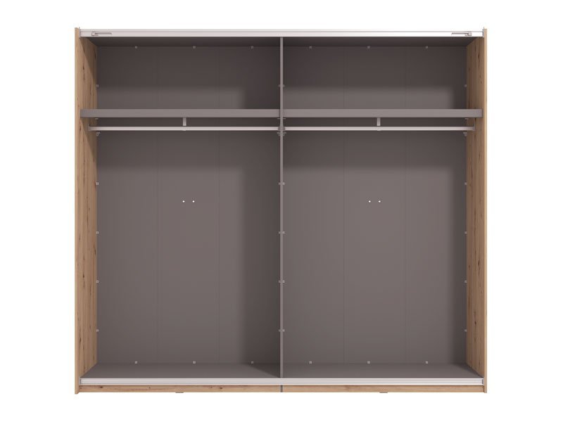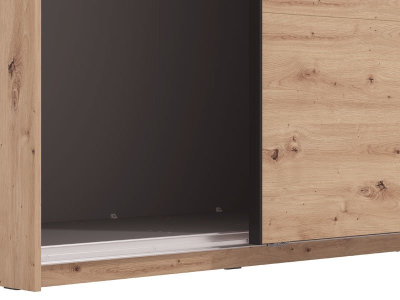 Garderober VEYMONT 245 OG h217 sa kliznim vratima, u dekoru artisan hrasta i segmentom sa ogledalom na levom frontu, doprinosi enterijerskoj funkcionalnosti i estetici. Deo je kolekcije garderobera VEYMONT i predstavlja elegantno i veoma atraktivno dizajnersko rešenje, čija izražena estetika doprinosi celokupnom ambijentalnom utisku. Upotrebni prostor ovog modela čine garderobne šipke i po jedna praktična polica sa leve i desne strane. Poseduje mogućnost dodavanja Seta polica odgovarajućih za ovaj model garderobera ili drugih funkcionalnih nadogradnji, kao i mogućnost ugradnje usporivača za klizna vrata. *Napomena: Cena je bez dodatne opreme. Preporučujemo Set polica Pg3 – w245, Usporivač UT, Funkcionalna polica FUP 245 h217, Set fioka 2F (FUP)