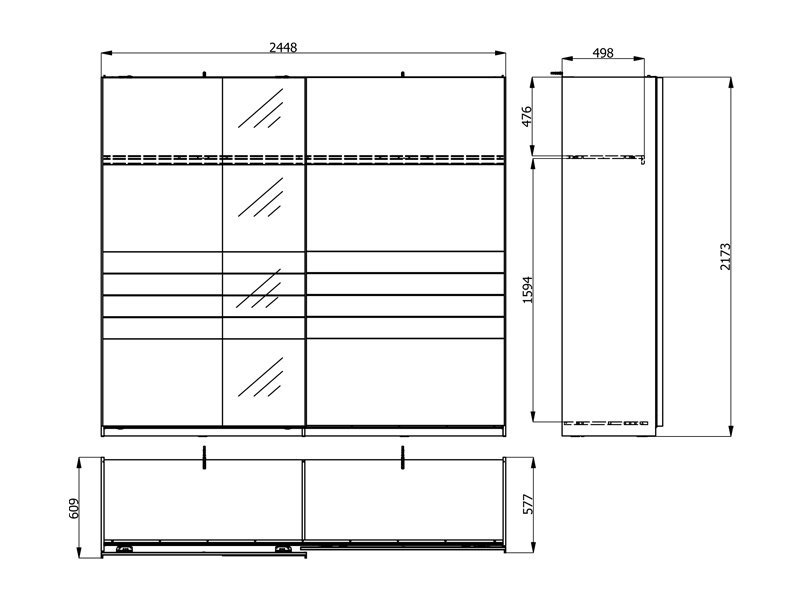 Dimenzije: Širina 245,0 cm x Dubina 61,0 cm x Visina 217,5 cm