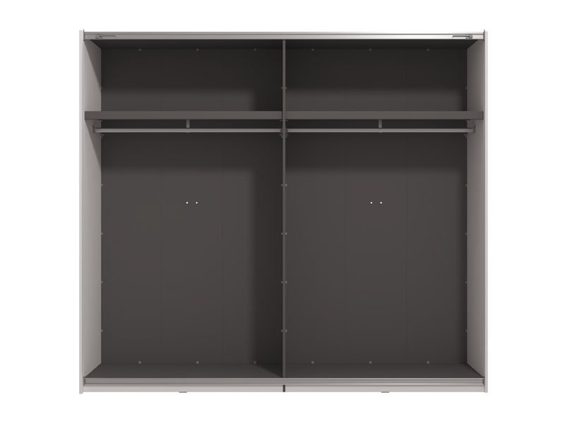 Garderober VEYMONT 245 OG h217 sa kliznim vratima, u opak belom dekoru i segmentom sa ogledalom na levom frontu, doprinosi enterijerskoj funkcionalnosti i estetici. Deo je kolekcije garderobera VEYMONT i predstavlja elegantno i veoma atraktivno dizajnersko rešenje, čija izražena estetika doprinosi celokupnom ambijentalnom utisku. Upotrebni prostor ovog modela čine garderobne šipke i po jedna praktična polica sa leve i desne strane. Poseduje mogućnost dodavanja seta polica odgovarajućih za ovaj model garderobera ili drugih funkcionalnih nadogradnji, kao i mogućnost ugradnje usporivača za klizna vrata. *Napomena: Cena je bez dodatne opreme. Preporučujemo Set polica Pg3 – w245, Usporivač UT, Funkcionalna polica FUP 245 h217, Set fioka 2F (FUP)