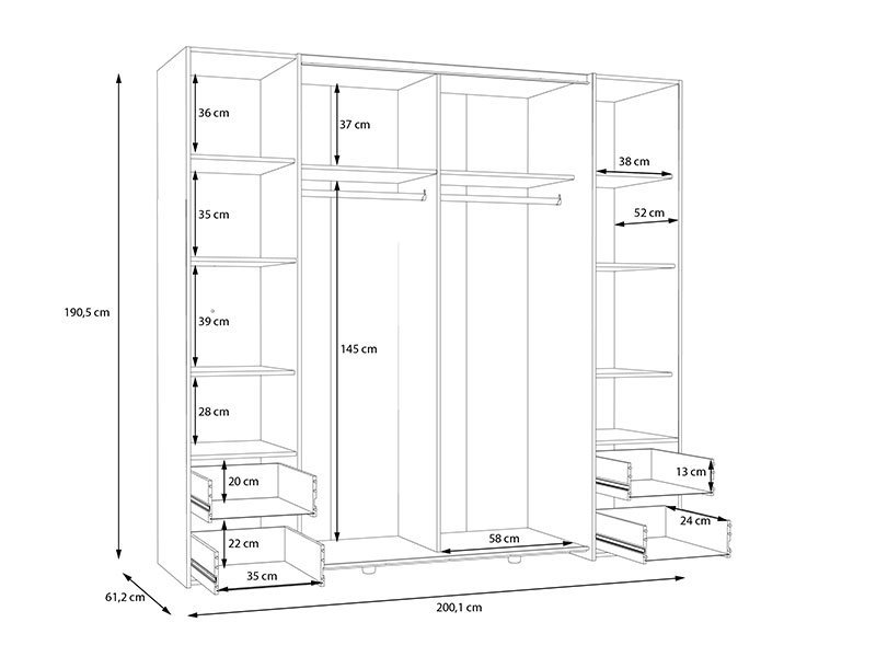 Dimenzije: Širina 200,0 cm x Dubina 61,0 cm x Visina 190,5 cm