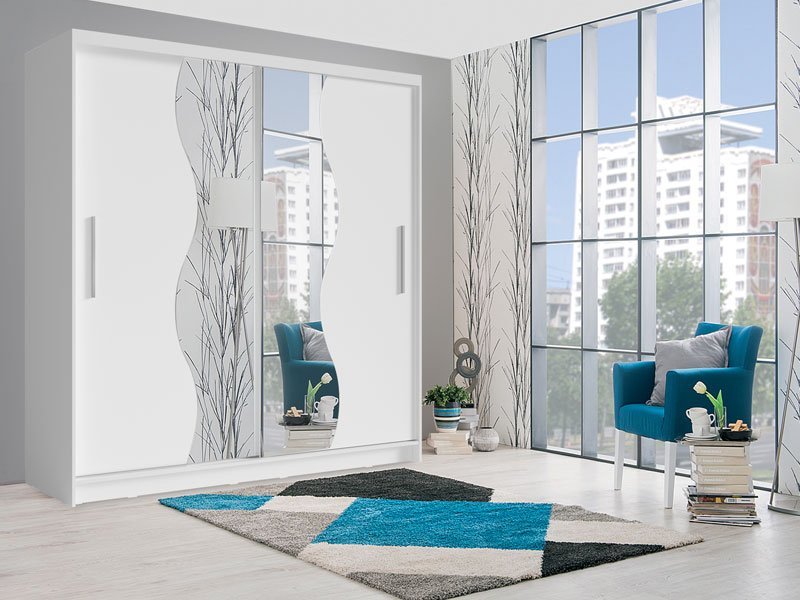 Tačan naziv dezena je: korpus / front iverica bela PB0010, ogledalo. Klizni garderober BERGAMO M sa ogledalom savremenog dizajna i praktične forme u vaš dom uneće dozu elegenacije i minimalizma. Upotrebni prostor ispunjen je delom sa garderobnom šipkom, kao i delom sa dva seta polica.