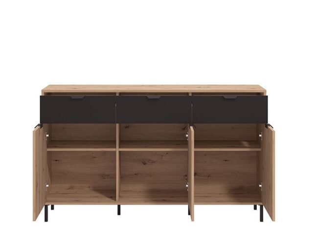 Tačan naziv dezena je: korpus iverica artisan, front iverica artisan ogledalo. Klizni garderober BERGAMO M sa ogledalom savremenog dizajna i praktične forme u vaš dom uneće dozu elegenacije i minimalizma. Upotrebni prostor ispunjen je delom sa garderobnom šipkom, kao i delom sa setom polica.