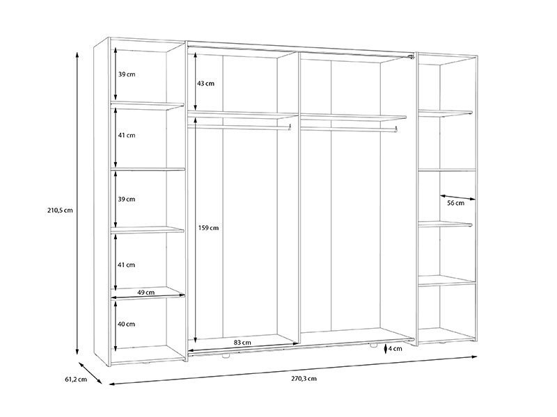Dimenzije: Širina 270,5 cm x Dubina 61,0 cm x Visina 210,5 cm