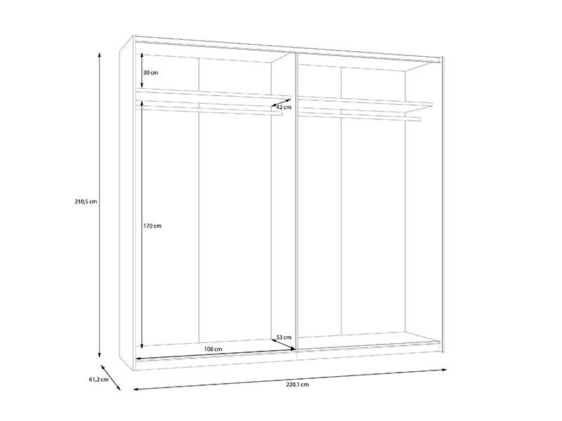 Dimenzije: Širina 220,0 cm x Dubina 61,0 cm x Visina 210,5 cm