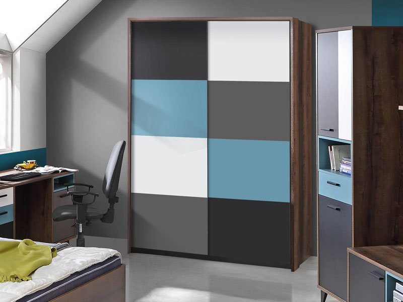 Tačan naziv dezena je: korpus iverica Mud Oak, front iverica Uni Wolfram Grey /White/Black/Oriental green. Klizni garderober RAVEN 170 predstavlja spoj funkcionalnog i modernog kliznog garderoba koji će odgovoriti na sve vaše potrebe kada je u pitanju odlaganje garderobe. Upotrebni prostor sadrži noseću policu i dve garderobne šipke. *Napomena: Cena je bez dodatne opreme. Preporučujemo Ram za klizni garderober RAVEN 170