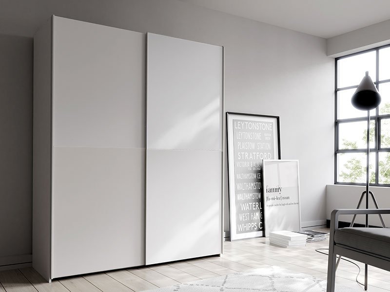 Tačan naziv dezena: korpus iverica bela, front iverica bela. Model kliznog garderobera ŠAH 150 obećava enterijersku praktičnost i maksimalnu iskorišćenost prostora sa garderobnom šipkom i nosećom policom. *Napomena: Cena je bez dodatne opreme. Preporučujemo Set polica za garderober ŠAH 150
