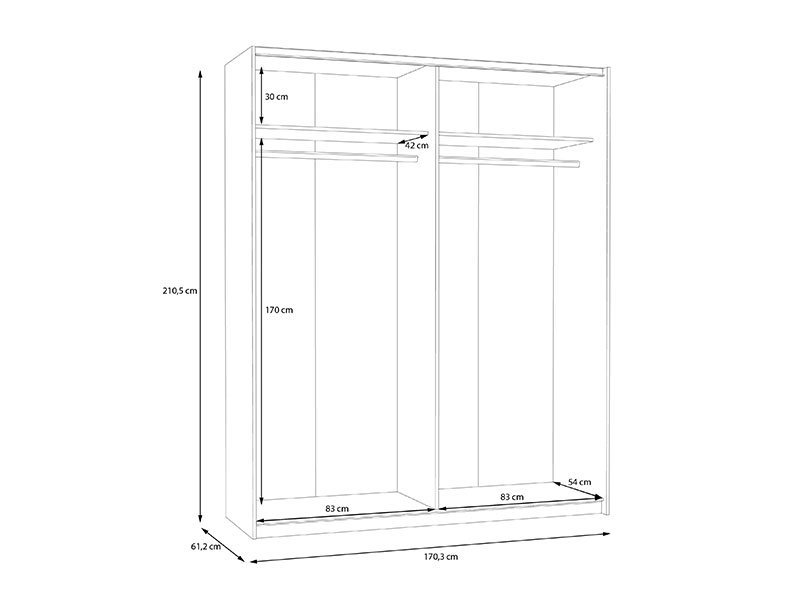 Dimenzije: Širina 170,5 cm x Dubina 61,0 cm x Visina 210,5 cm